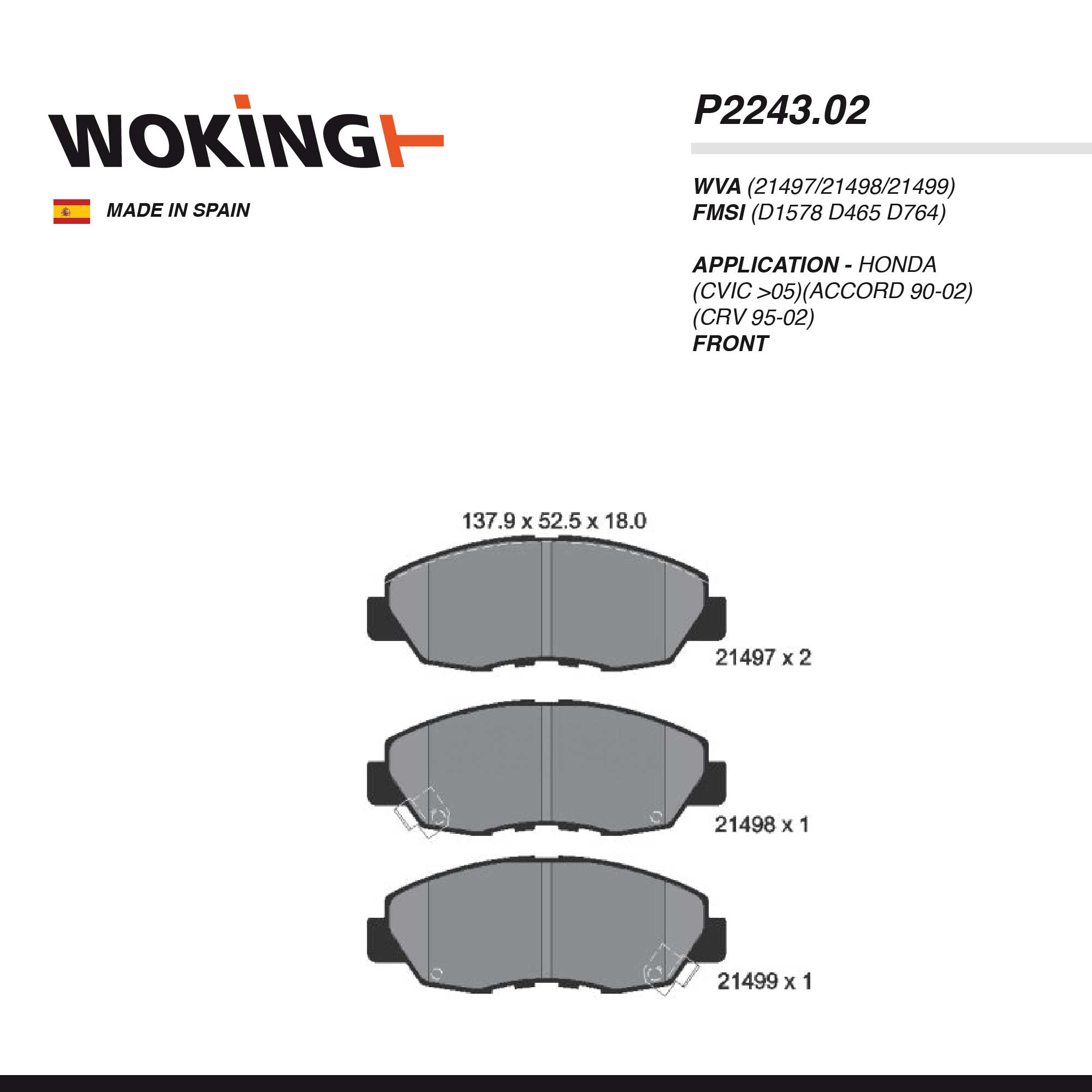 WOKING PAD| P2243.02 HONDA(CVIC >05)(ACCORD 90-02)(CRV 95-02) FRT